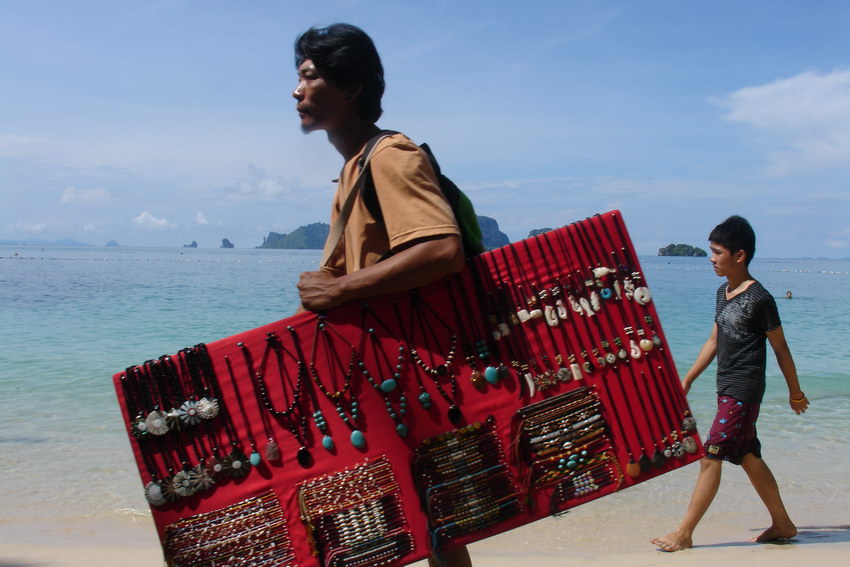 Tradicni prodej vseho mozneho na Pranang Cave Beach